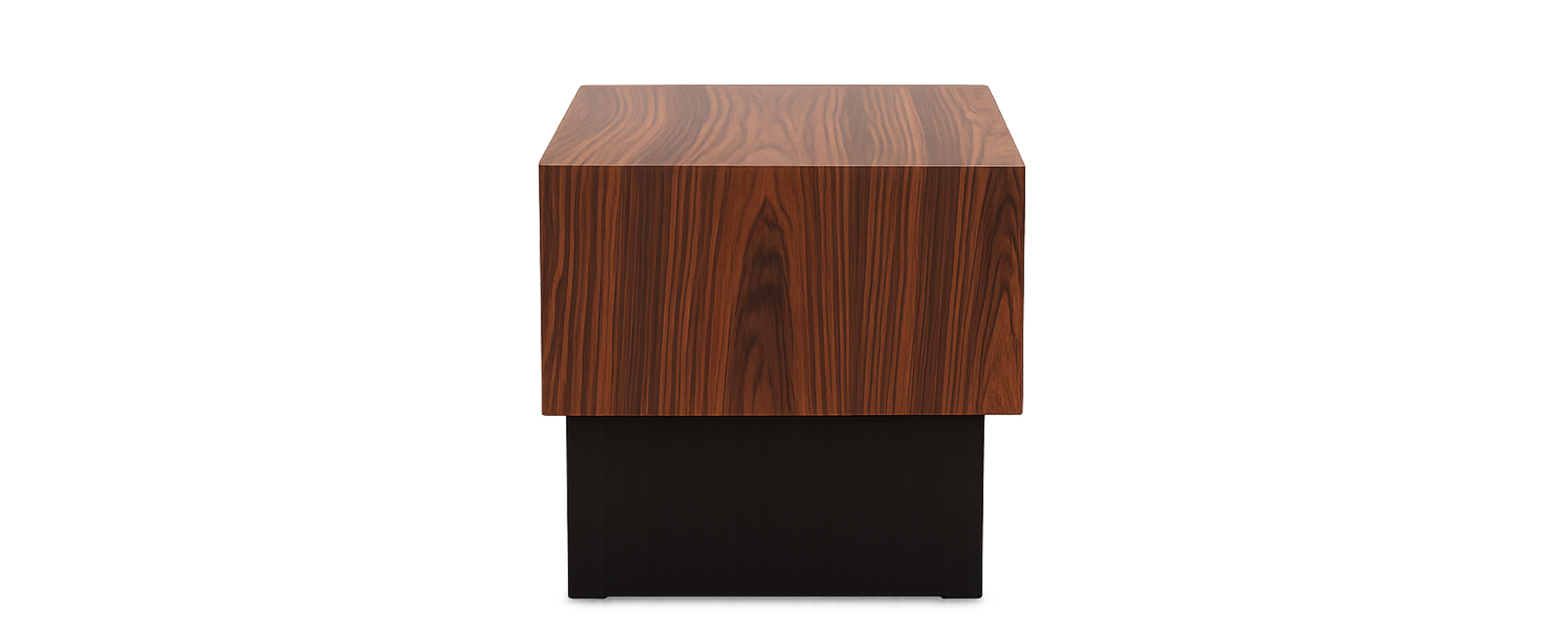Estrutura em medium density fiberboard revestidos com lâmina de madeira natural e base de metal pintado. |