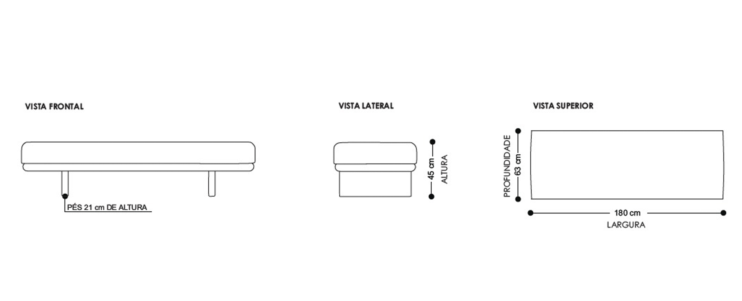 | Dimensões | L: 1.80 x P: 0.63 x A: 0.45 |