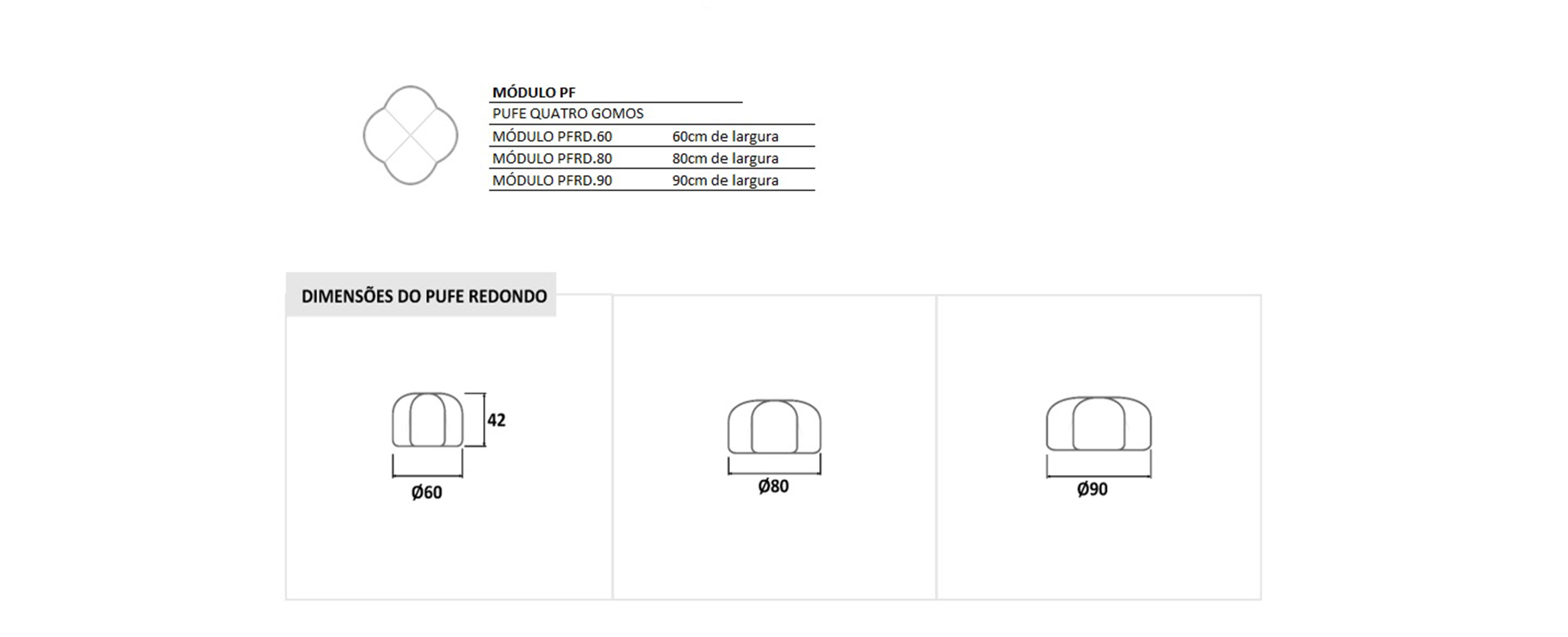 | Estrutura | Madeira eucalipto saligna, chapas OSB e compensado. Revestida com espuma de poliuretano D28. Pés plástico recuados. |