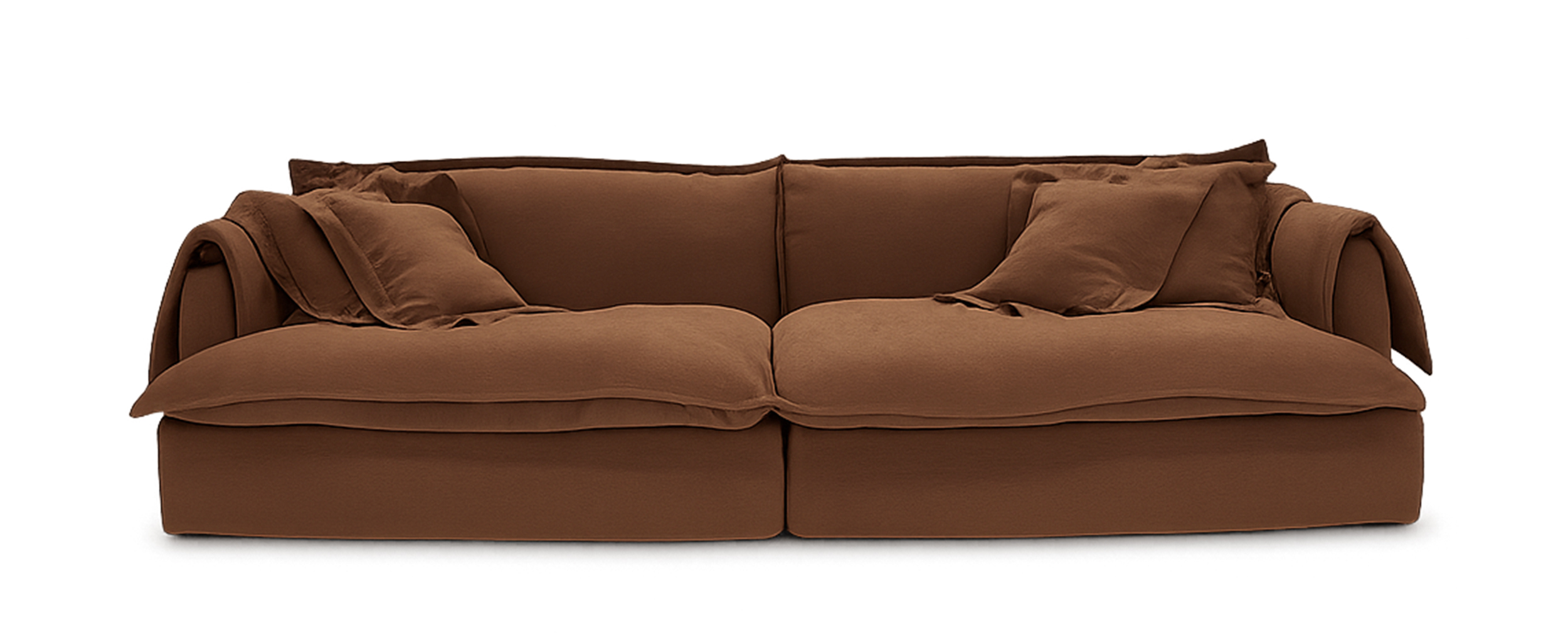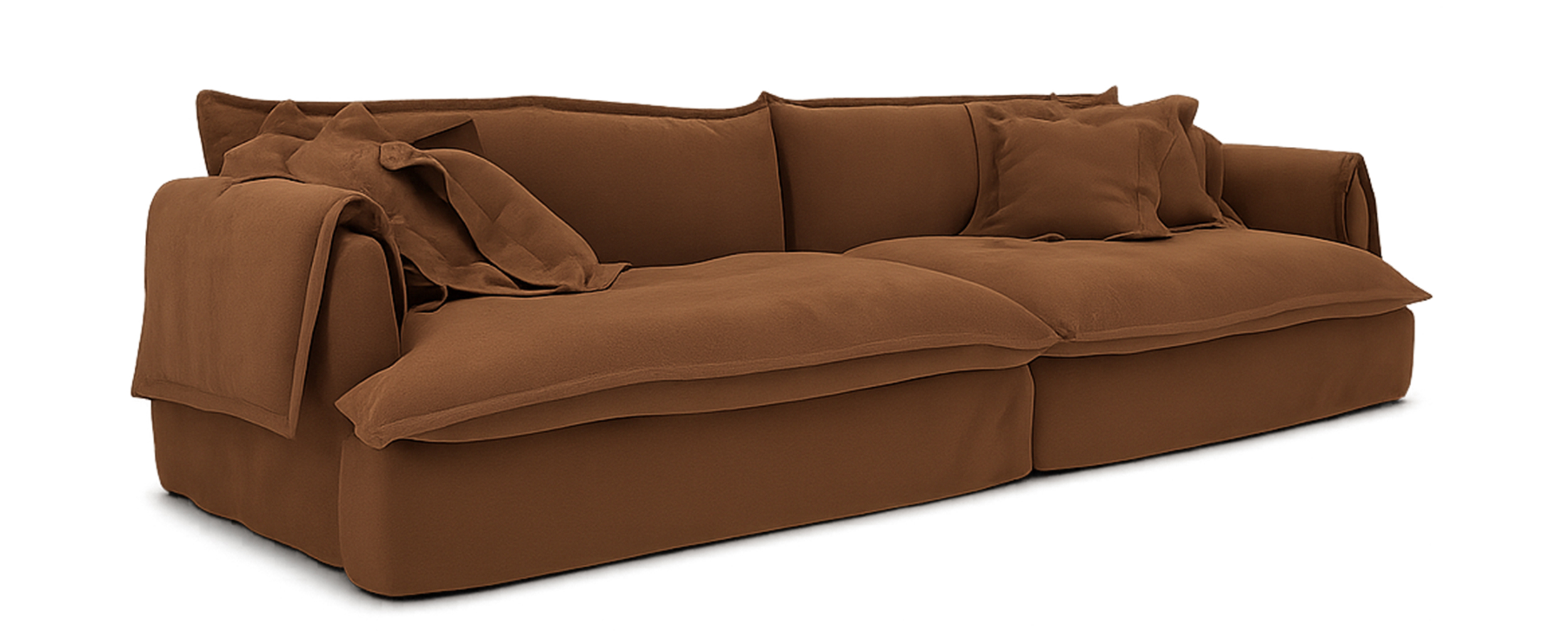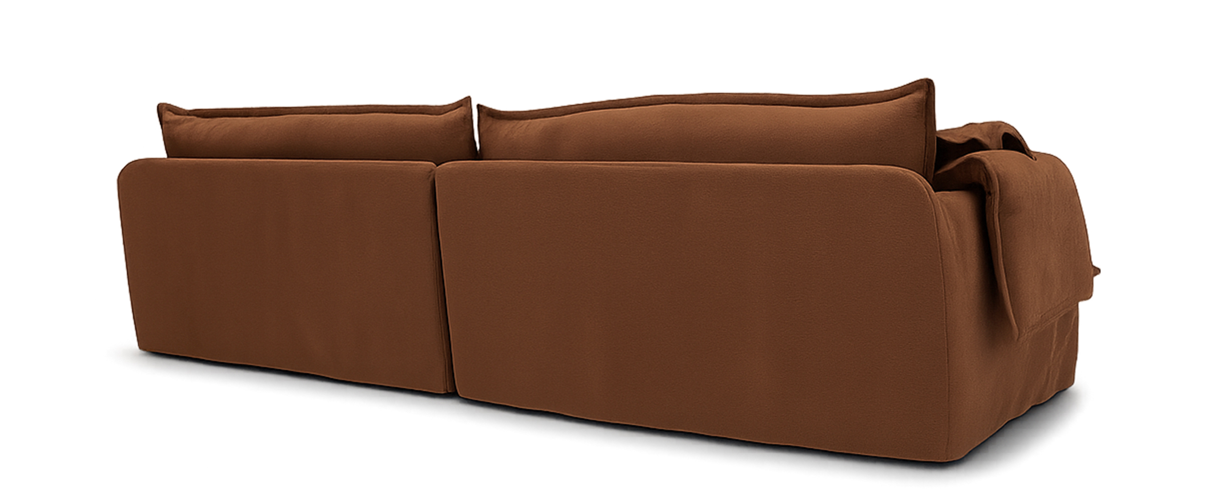 | Estrutura | Estrutura em eucalipto, compensado naval, espuma D30 soft, fibra soliconada e espumas. Fibra em manta, molas estruturais, box de molas ensacadas e percinta elástica nos assentos. Almofadas assento e encosto composição do enchimento com pemas. Almofadas decorativas, enchimento com pluma sintética. Almofadas do braço, espuma eco soft. Foro em tecido algodão e duplo revestimento com capa. Pé de madeira. |